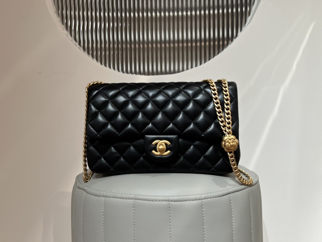 지존샵 CHANEL Classic Flap Bag Small Camellia Chain 23(샤넬 클래식 플랩백 스몰 카멜리아 체인)샤넬을 대표하는 클래식 플랩 디자인에샤넬의 상징인 카멜리아(동백꽃) 체인 디테일이 더해진 특별한 모델입니다.다이아몬드 퀼팅과 CC 턴락 장식이 조화를 이루며고급스러운 체인 장식이 포인트가 되는 아이코닉 숄더백입니다.소재Lambskin (램스킨)하드웨어Antique Gold-Tone Metal사이즈약 23 × 14 × 6 cm