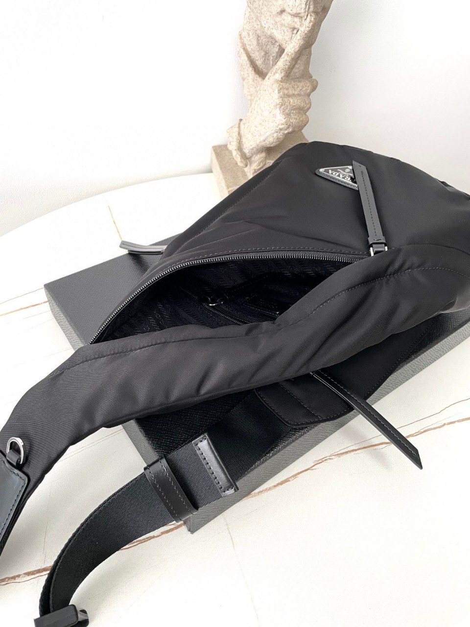 PRADA Re-Nylon 슬링백 (블랙)모델번호 2VZ09237.5 × 26.5 × 10cmRe-Nylon 재생 나일론 / 실버 삼각 로고 / 올수공 제작---PRODUCT HIGHLIGHT프라다 특유의 미니멀 감성을 담은남성 Re-Nylon 슬링백 블랙.백팩과 숄더백 사이의 균형을 잡은 실루엣으로데일리와 트렌디함을 동시에 만족시키는 디자인입니다.정면을 장식하는에나멜 메탈 삼각 로고가 브랜드 아이덴티티를 완성합니다.---MATERIAL & DETAIL친환경 Re-Nylon 재생 나일론 바디실버 톤 에나멜 메탈 삼각 로고조절 가능한 나일론 스트랩측면 버클 디테일외부 지퍼 포켓 2개내부 지퍼 포켓 1개로고 프린팅 Re-Nylon 안감올수공 정교 제작---DESIGN POINT인체 곡선을 따라 흐르는 슬링 구조가볍지만 탄탄한 내구성캐주얼·스트릿·포멀 믹스 스타일 연출 가능실용성과 수납력을 모두 고려한 설계---SIZE높이 37.5cm가로 26.5cm폭 10cm---판매가29---제품문의 (아래 고정 · 주소형태)The mirror카카오톡 오픈채팅 : https://open.kakao.com/o/s1h2cybi
