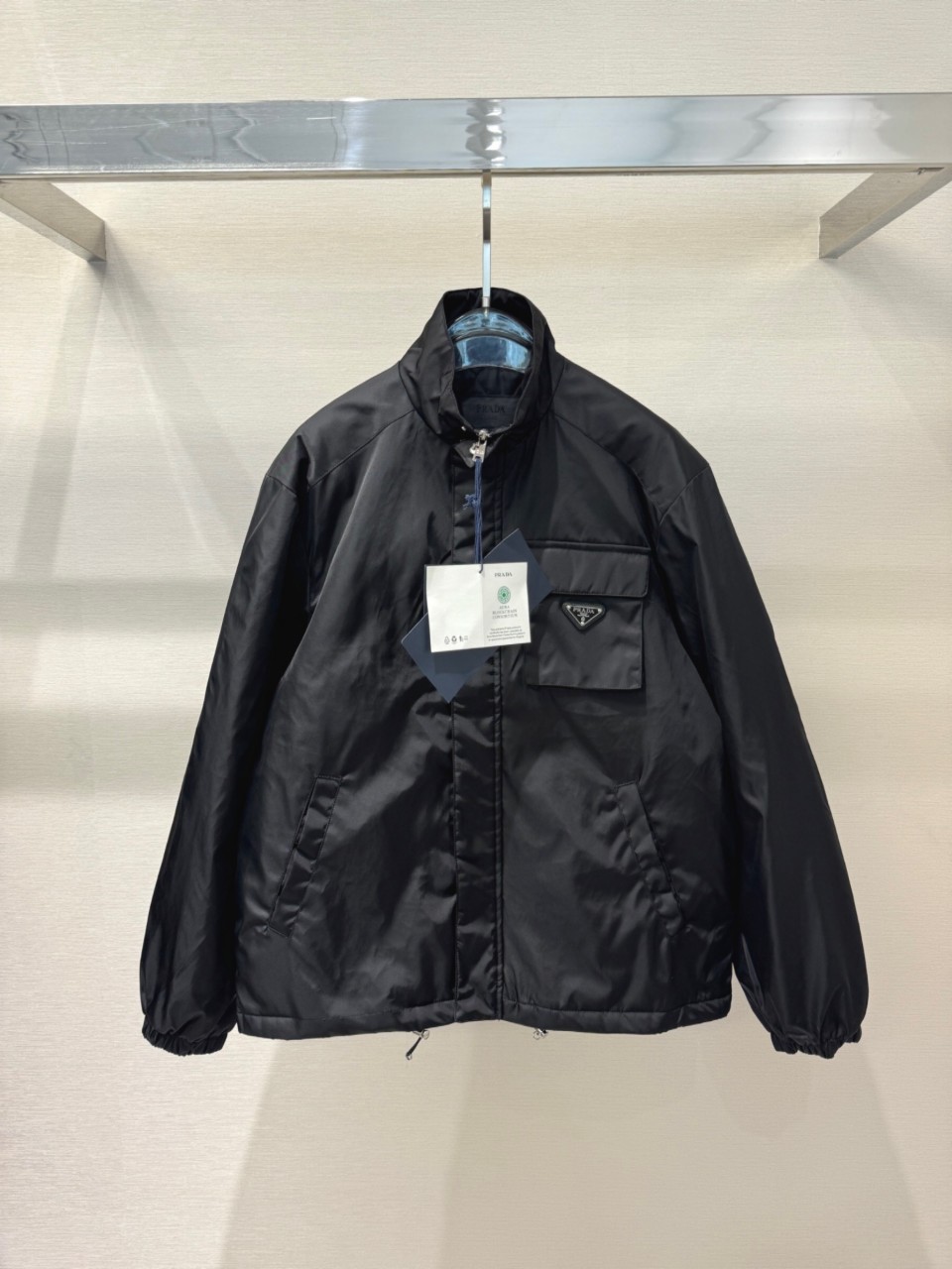 · 가슴 포켓에 프라다 삼각 메탈 로고 디테일