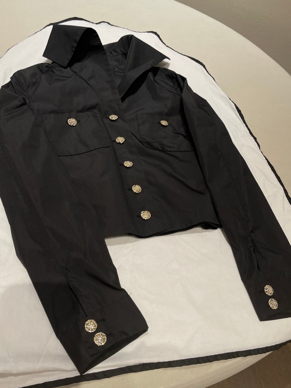 100% 실크 소재로 완성된 샤넬 감성의 하이엔드 자켓. 세일러 카라 디자인으로 목선을 더욱 길고 슬림하게 연출하며 단정하면서도 우아한 분위기를 완성합니다.