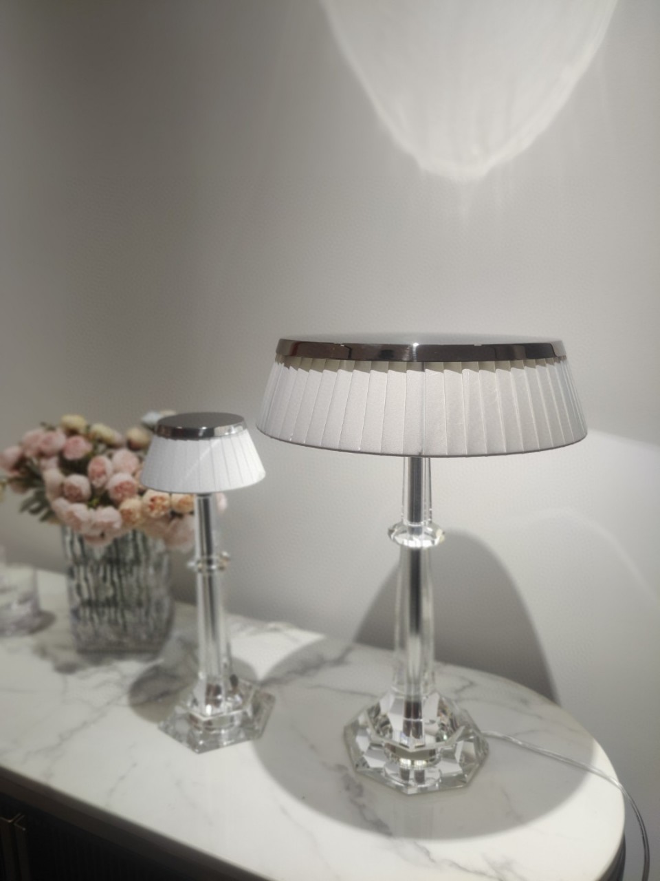 공간에 불을 켜는 순간, 바카라 특유의 투명한 크리스탈 베이스가 빛을 반사하며 고급스러운 분위기를 완성해주는 프리미엄 테이블 램프입니다. 심플하지만 압도적인 존재감. 침실 협탁, 거실 사이드테이블, 라운지 공간 어디에 두어도 인테리어의 품격이 한 단계 올라갑니다.