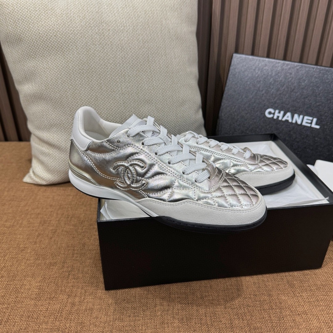 클래식한 CC 로고와 다이아 퀼팅 패턴이 조화를 이루는 샤넬 테니스 스니커즈 라인. 미니멀한 실루엣에 퀼팅 디테일을 더해 캐주얼하지만 고급스러운 분위기를 완성합니다. 데일리룩은 물론 세미 캐주얼 스타일까지 자연스럽게 매칭됩니다.