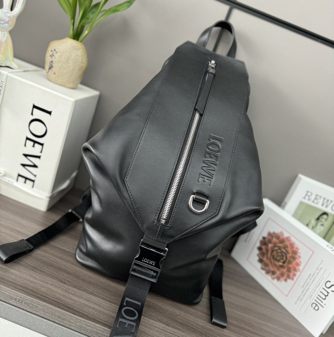 로에베 클래식 송아지 가죽 변형 백팩 (스몰)로에베의 대표적인 라인업에서 영감을 받은 변형 백팩으로,부드럽고 탄력 있는 클래식 송아지 가죽으로 제작되어 편안한 착용감을 제공합니다.견고한 구조와 세련된 디자인으로 일상부터 여행, 비즈니스 캐주얼까지 완벽히 어울립니다.---■ 제품 특징· 인체공학적으로 설계된 쿠션형 어깨끈 & 메쉬 등판 구조· 브랜드 로고 각인 금속 장식, 가죽 지퍼 헤드· 상단 손잡이 + 조절 가능한 어깨끈으로 2WAY 착용 가능· D링 로고 각인 디테일, 코튼 캔버스 안감· 외부 지퍼 포켓으로 태블릿, 서류 등 수납 가능· 남녀 모두에게 적합한 유니섹스 디자인---■ 모델명10235■ 사이즈 (cm)24 × 41 × 16 클래식한 라인에 로에베 특유의 미니멀 감성을 더한 백팩.데일리 룩은 물론, 출장이나 여행에도 완벽한 동반자가 되어줍니다.