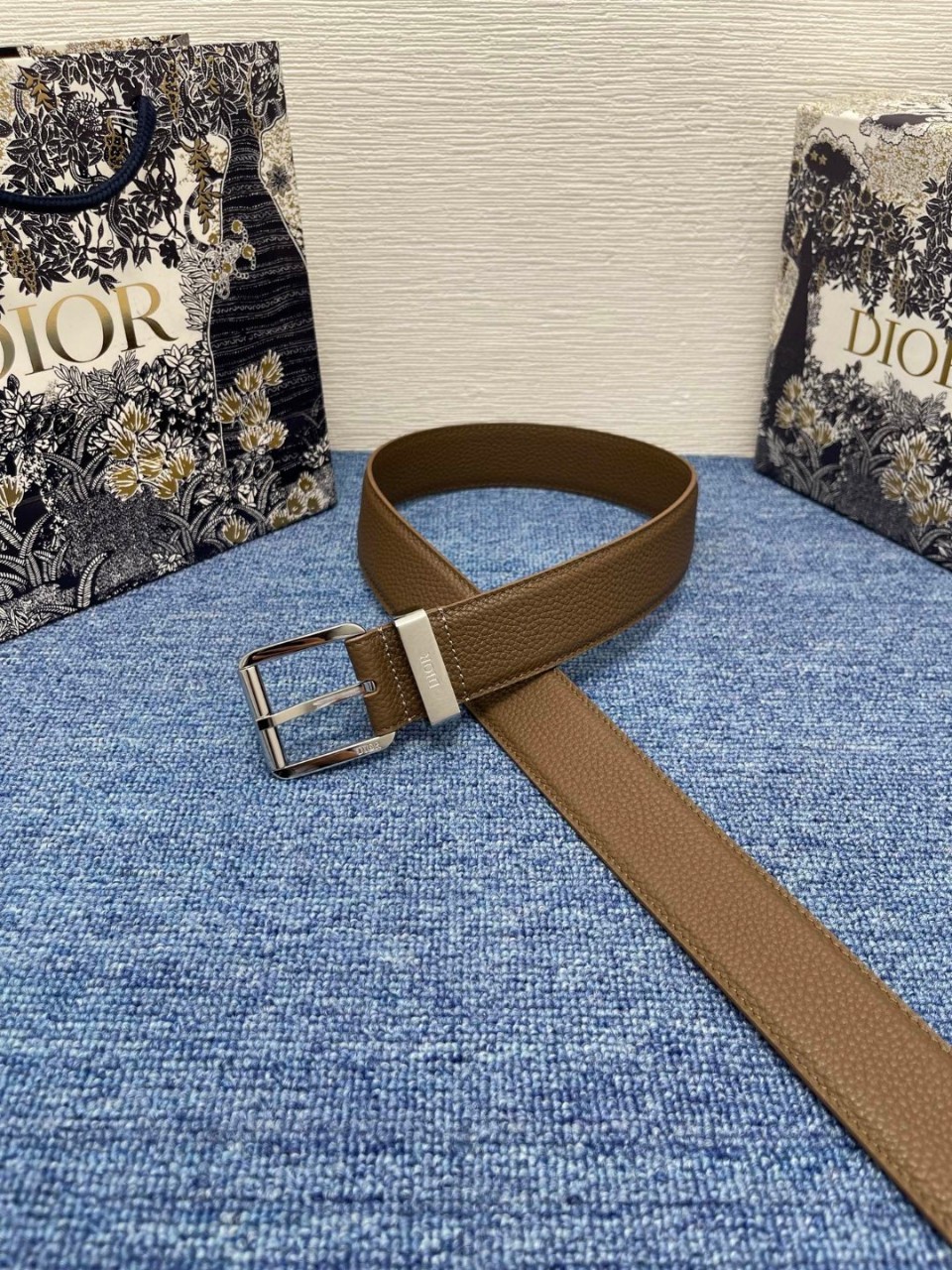 디올 특유의 절제된 우아함이 돋보이는 클래식 남성 레더 벨트 모델입니다. 35mm 폭의 브라운 그레인 송아지 가죽을 사용해 차분하면서도 고급스러운 질감을 살렸으며, 빈티지 실버 톤의 브라스 핀 버클이 매칭되어 전체적인 분위기를 한층 더 클래식하게 완성합니다.