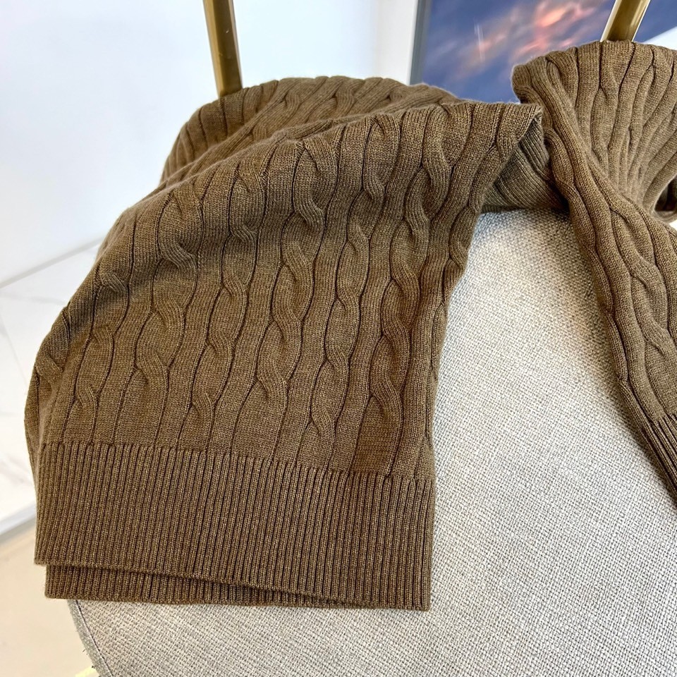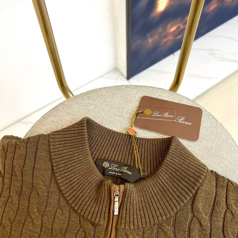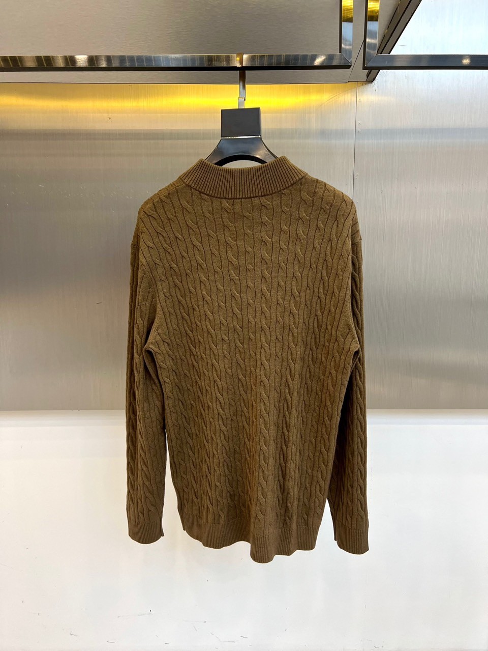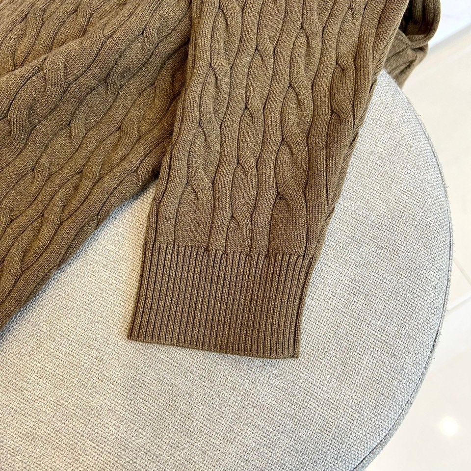 Loro Piana 로로피아나 남성 반집업 하이넥 케이블 니트 [ 브라운 ]
