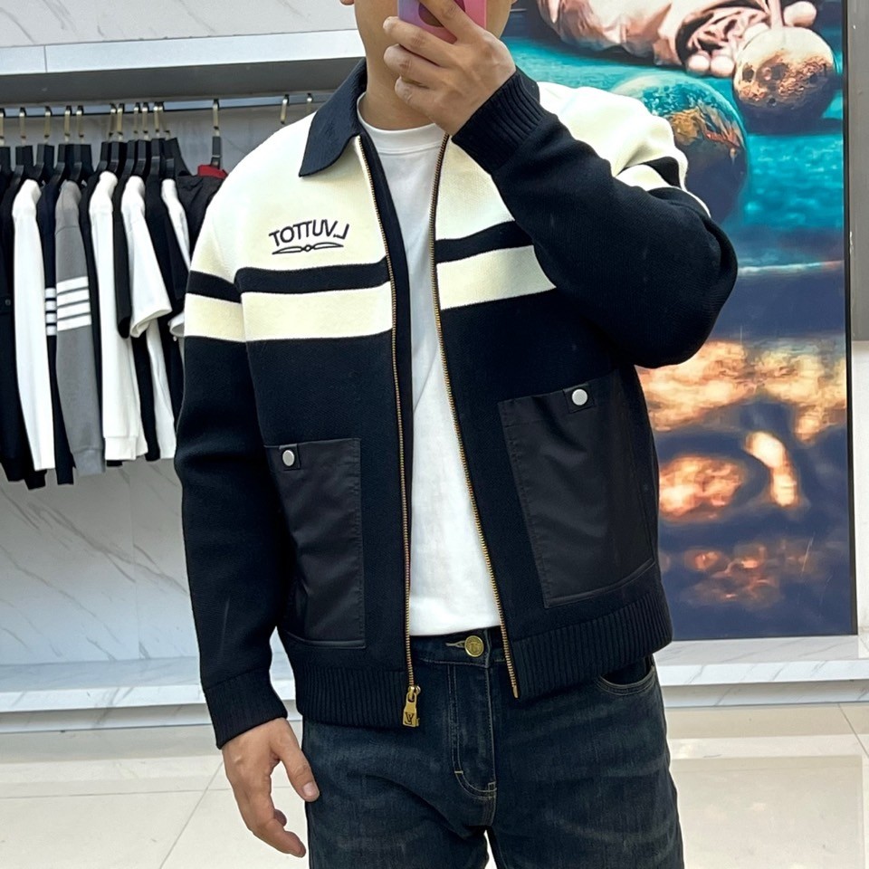Louis Vuitton 루이비통 블랙 & 화이트 배색 니트 집업 자켓