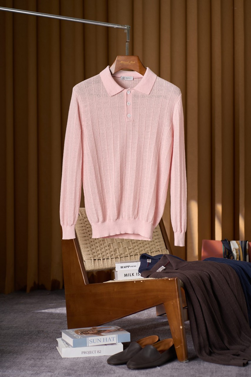 BC 브루넬로쿠치넬리 입체 자카드 삼단 버튼 긴팔 폴로 니트