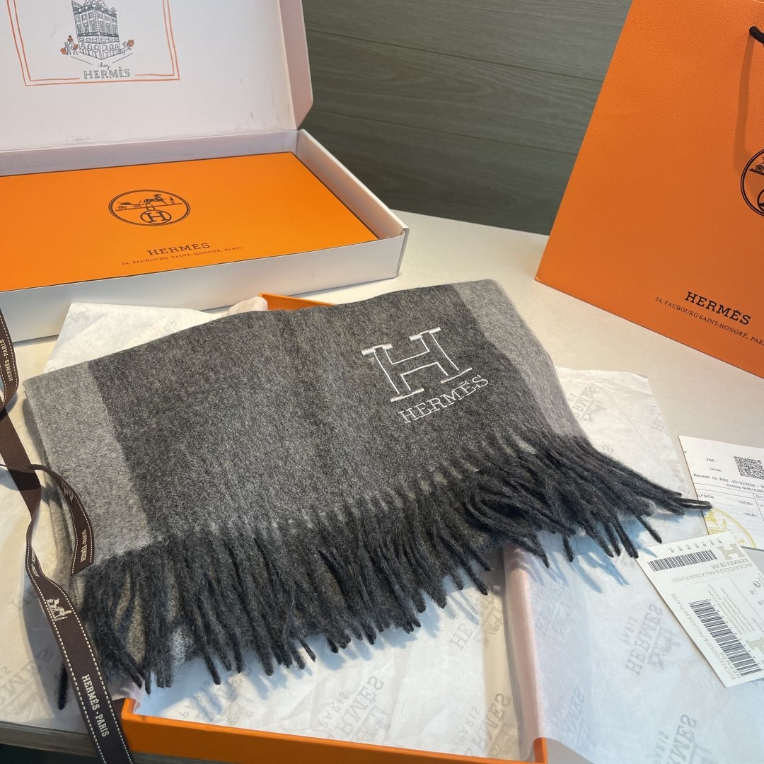 ---HERMES 클래식 더블페이스 머플러HERMES Double-Face Wool Scarf (그레이)---제품 특징• 사랑스러운 아이마씨(Double-Face) 디자인의 클래식 머플러• 심플하면서도 고급스러운 HERMES 로고 자수 포인트• 100% 순모 소재로, 부드럽고 따뜻한 착용감• 가볍고 다양한 코디에 매치하기 쉬운 남성용 디자인• 연령대 상관없이 누구나 어울리는 베스트셀러 아이템---소재100% 양모 (Pure Wool)사이즈35 × 200 cm남성 라인으로 출시된 제품이지만, 부드러운 컬러감 덕분에 여성분들이 착용해도 멋스럽게 연출할 수 있는 유니섹스 머플러예요.