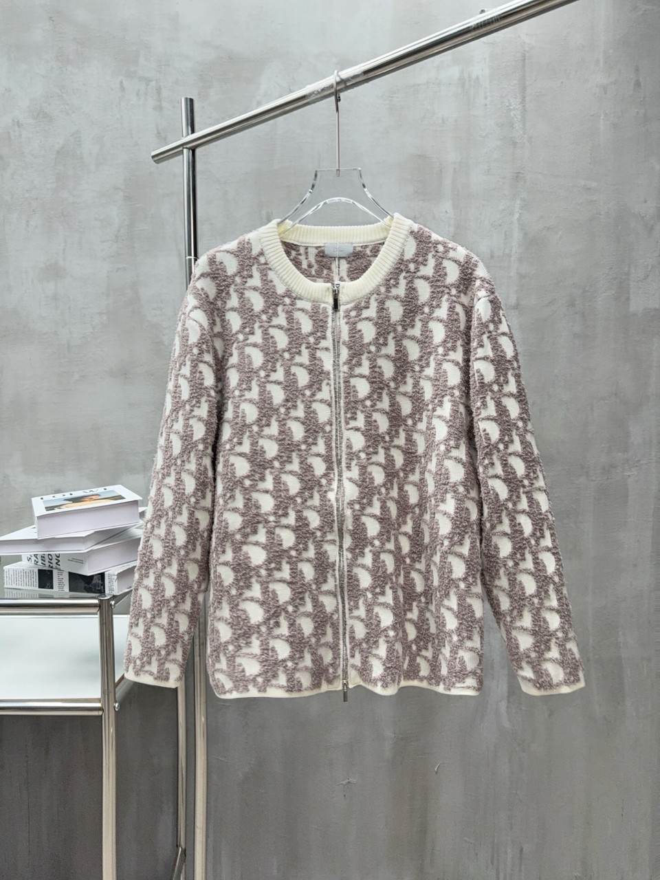 Dior 2025 FW 울·코튼 믹스 라운드 니트 가디건 – 베이지 모노그램