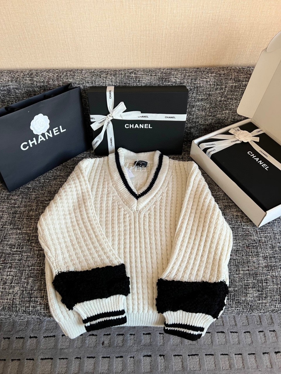 CHANEL 25FW 브이넥 배색 울 니트 스웨터샤넬의 클래식한 감성을 담아 재해석한 25FW 브이넥 배색 울 니트 스웨터입니다.ZP 공장에서 정품을 분해 후 동일 공정으로 제작된 하이퀄리티 제품으로,울·코튼 등 고급 원사를 혼방하여 풍부한 텍스처와 뛰어난 보온성을 제공합니다.브랜드의 상징적인 블랙&아이보리 배색 디테일,깊이감 있는 골지 니팅, 뒤판의 샤넬 로고 엠블럼까지정품과 유사한 조형미를 구현해 세련된 실루엣을 선사합니다.부드럽고 탄탄한 착용감으로 FW 시즌 데일리룩에 활용도가 높으며,포멀·캐주얼 어디에나 깔끔하게 매칭되는 프리미엄 라인 니트입니다.---✔ 색상블랙아이보리---✔ 사이즈 (한국식 변환 기준)