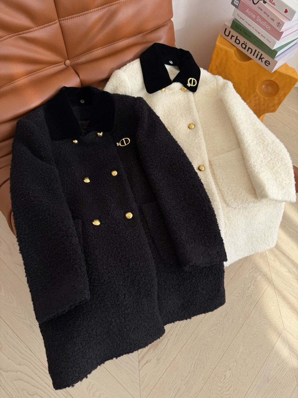 DIOR 디올 CD 진주 브로치 양모 더블 코트 (아이보리/블랙)