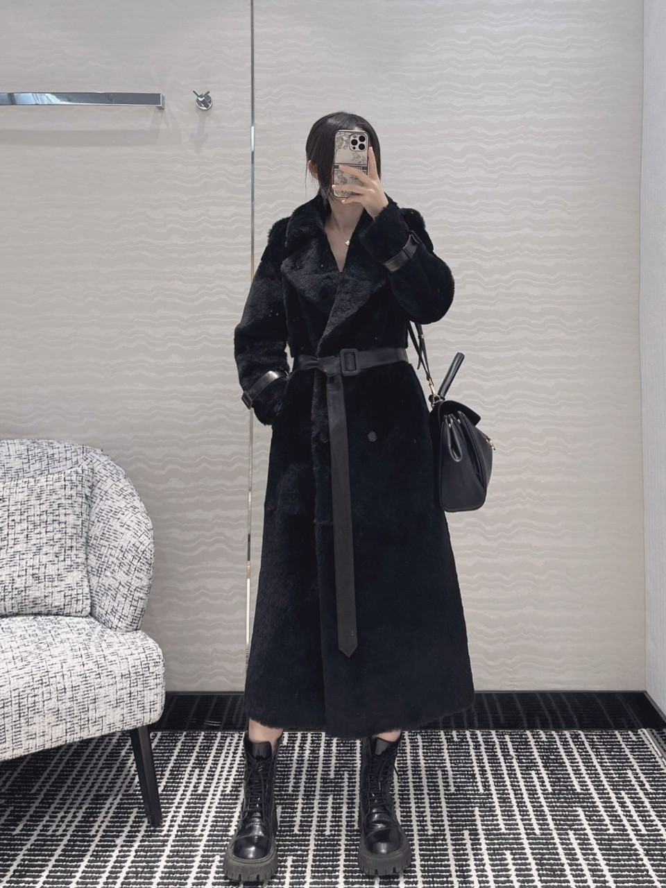 스페인산 양모 & 가죽 믹스 벨티드 롱코트