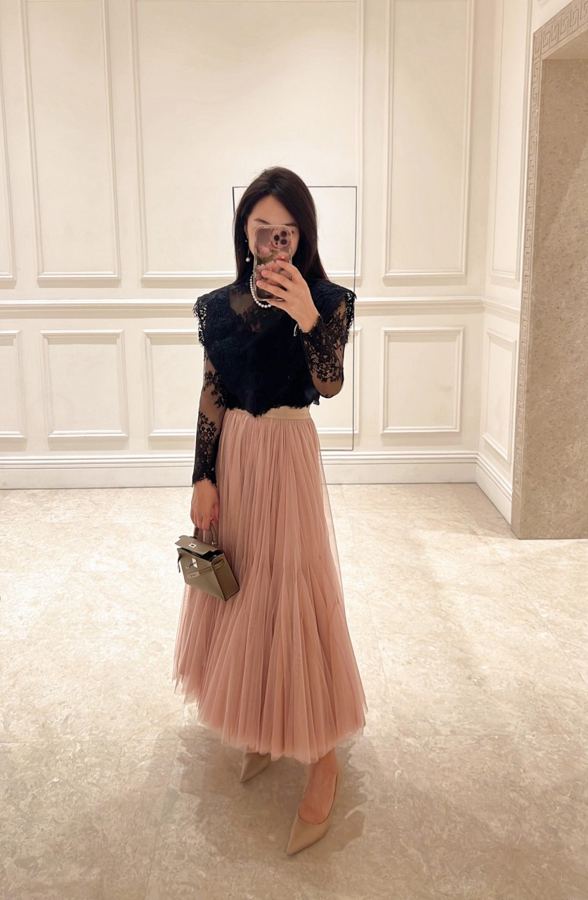 실크 안감 + 오버사이즈 튤 원단으로 고급스러운 착용감