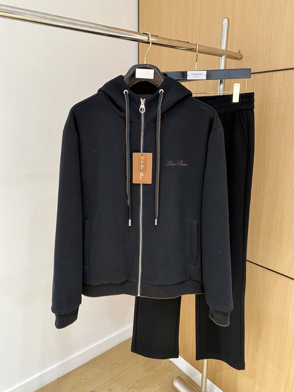 Loro Piana 2025FW 로로피아나 캐시미어 울 후드 세트 (상의+하의) - 블랙