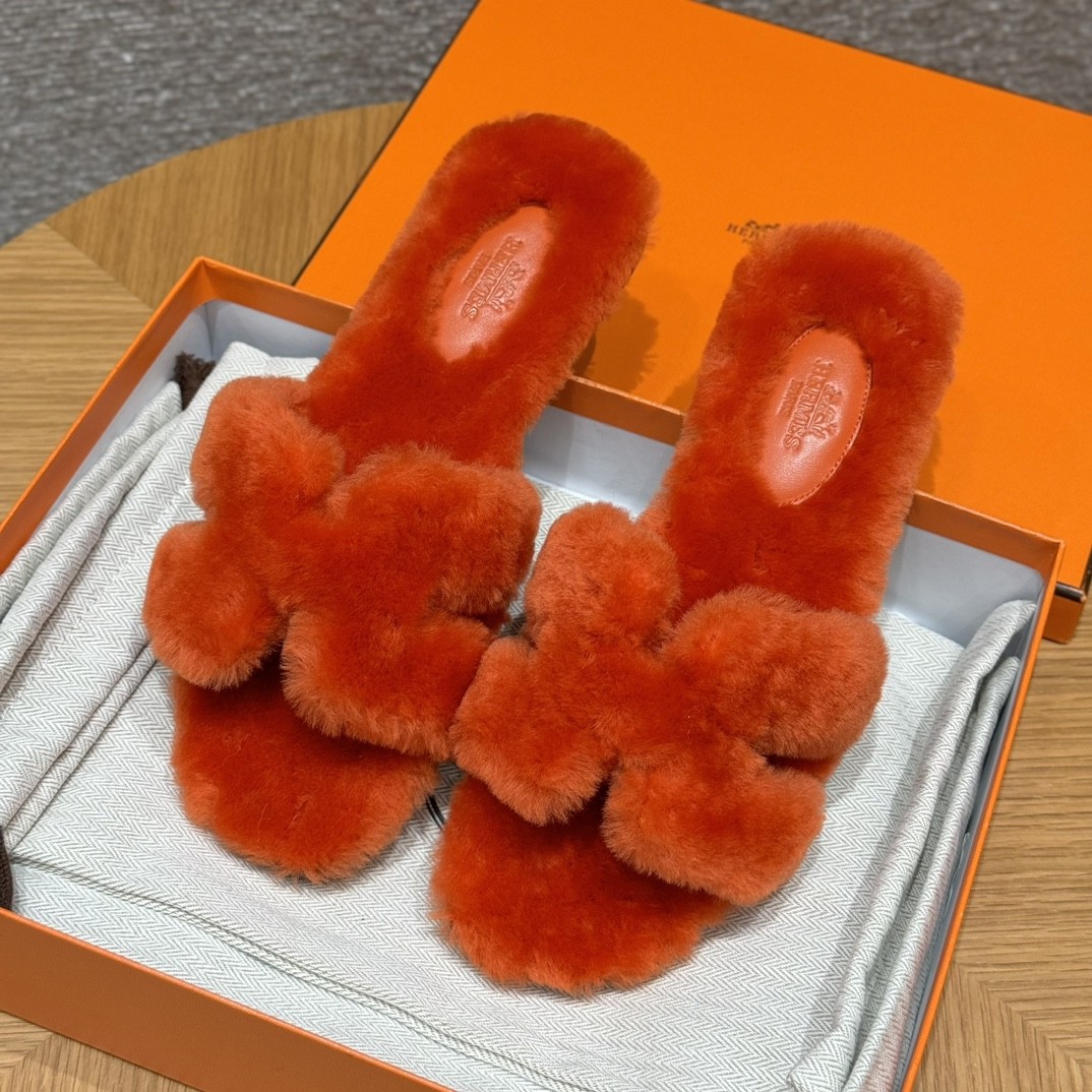 에르메스 오란 샌들 (양털 울스킨 / Rouge De Turin 루즈 드 튀랭 레드)