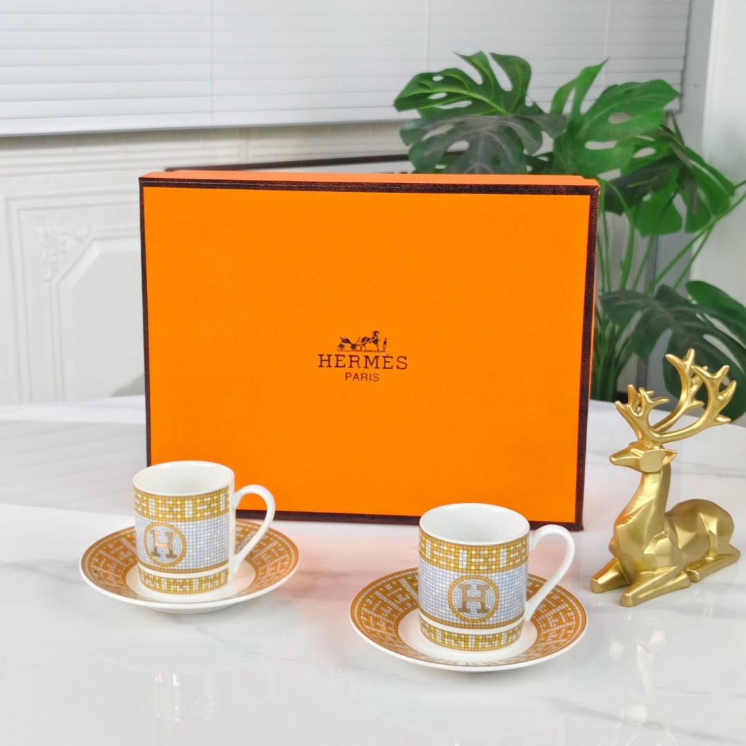 HERMÈSH 로고 클래식 커피잔 2인 세트 (골드 / 컵 + 소서 / 선물박스 포함)에르메스의 상징인 H 로고와고급스러운 골드 패턴 디테일이 조화를 이루는프리미엄 커피잔 2인 세트입니다.테이블 위에 올리는 순간단정하면서도 존재감 있게 분위기를 완성해주며,격식 있는 선물로도 손색없는 클래식 아이템입니다.에르메스 오렌지 박스 포함으로선물용/소장용 모두 완벽한 구성입니다.---✅ 구성커피컵 2개소서(받침) 2개에르메스 선물박스 포함---✅ 포인트에르메스 시그니처 H 로고 디자인골드 컬러 포인트로 고급스러운 테이블 연출홈카페/티타임/접대용 모두 추천선물용 + 소장용 최상급 구성---✔️ 오래 봐도 질리지 않는 클래식함으로에르메스 감성 테이블을 완성해주는 커피잔 세트입니다.---제품문의The mirrorhttps://open.kakao.com/o/s1h2cybi
