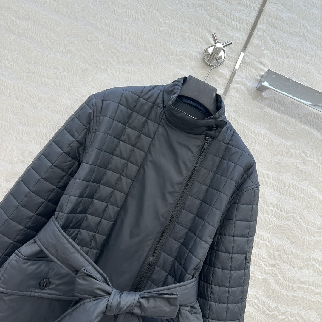 중장기장 코튼 패딩 아우터 → 허리벨트 디테일로 실루엣을 잡아주는 세련된 디자인
