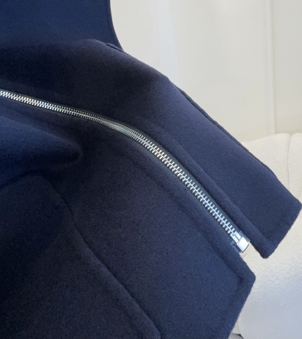 니트 칼라와 터틀넥 디테일, 팔라듐 도금 지퍼가 더해져 심플하면서도 세련된 무드를 연출합니다.