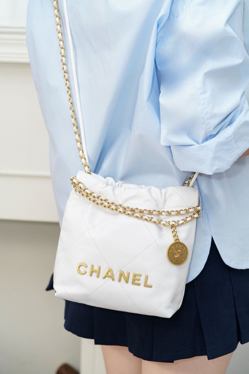 샤넬 25A 시즌 22미니백 투투백 (팬더샵)화이트 · 골드 하드웨어샤넬 특유의 자유롭고 내추럴한 감성을 담아낸 22 백 라인을한층 더 사랑스러운 비율로 완성한 25A 시즌 22 미니 백입니다.기존 22 백의 실루엣을 유지하면서도미니 사이즈 특유의 경쾌함과 세련된 무드를 더해데일리부터 포인트 스타일링까지 폭넓게 활용 가능한 아이템입니다.이번 시즌 모델은 자석 잠금 디테일이 적용되어소지품을 보다 안정적으로 보호하며,사용 시 실용성과 완성도를 한층 끌어올렸습니다.---✔ 소재 & 퀄리티램스킨 (Lambskin)부드럽고 섬세한 촉감의 램스킨을 사용하여자연스러운 주름감과 유연한 실루엣이 돋보입니다.가볍고 착용감이 뛰어나며, 사용할수록 더욱 고급스러운 분위기를 완성합니다.---✔ 디자인 포인트드로우스트링 형태의 입구 디자인고급스러운 골드 톤 체인 하드웨어체인 스트랩 탈부착 가능숄더 / 크로스 / 핸드 캐리 연출 가능미니 사이즈임에도 램스킨 특유의 유연함 덕분에수납력이 뛰어나 실사용 만족도가 높은 모델입니다.---✔ 사이즈19 × 20 × 6 cm---✔ 가격58---