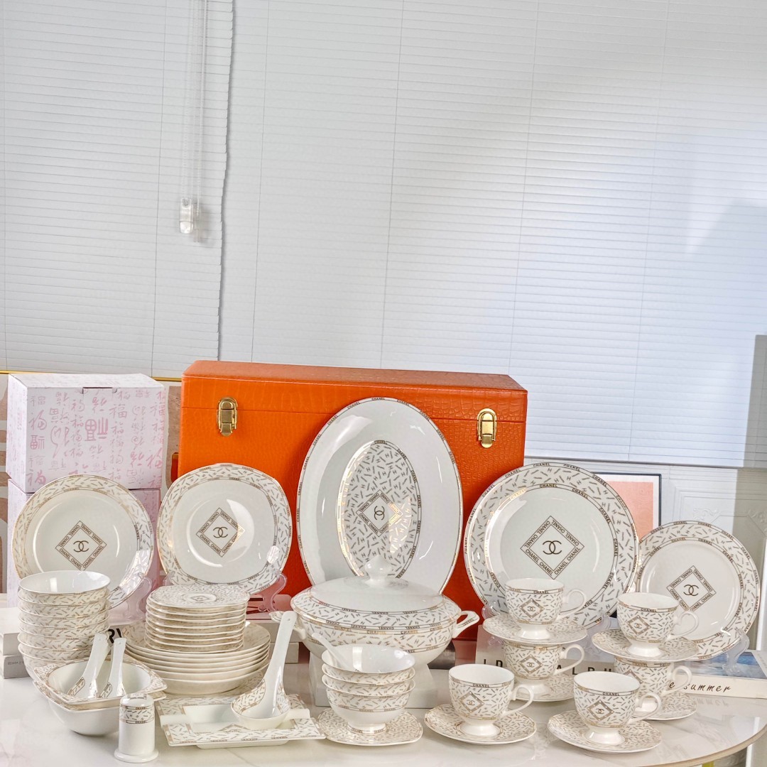 ---CHANEL60피스 프리미엄 식기 세트테이블 위에 올리는 순간 분위기가 달라지는샤넬 감성 60피스 풀세트 테이블웨어입니다.구성 자체가 완벽해서 신혼/집들이/프리미엄 선물로도 최상급이며소장용으로도 만족도가 정말 높은 제품입니다.---✅ 구성 / 사이즈[총 10개] 밥그릇(공기)지름 12.2cm / 높이 6.2cm[총 10개] 수저받침(스푼받침)길이 13.3cm[총 10개] 뼈접시(골접시)변 길이 13.9cm / 높이 1.2cm---[총 6개] 컵지름 8.5cm / 높이 7.5cm용량 200ml[총 6개] 소서(받침)지름 14.9cm / 높이 1.7cm[총 6개] 8인치 원형 국접시지름 20.5cm / 높이 3.5cm---[총 2개] 8인치 평접시지름 21cm / 높이 2cm[총 2개] 8인치 사각 국접시변 길이 20.5cm / 높이 4.2cm[총 2개] 디저트볼변 길이 14.3cm / 높이 5.2cm---[총 1개] 이쑤시개통바닥 지름 5.4cm / 입구 지름 4cm / 높이 8cm[총 1개] 14인치 생선접시길이 36.3cm / 너비 26cm / 높이 2.5cm[총 1개] 10.5인치 평접시지름 26.8cm / 높이 2.1cm[총 1개] 9인치 탕냄비(뚜껑 포함)길이 30cm / 지름 23.2cm냄비 높이 9.3cm / 뚜껑 포함 높이 16cm[총 1개] 대형 국자(국스푼)길이 22.7cm / 너비 7.5cm / 깊이 3.3cm[총 1개] 재떨이길이 19.4cm / 너비 16.3cm / 높이 2.4cm---✅ 케이스(박스)길이 55.4cm / 너비 24.2cm / 높이 41cm무게 18kg---✔️ 풀세트 구성이라 테이블 세팅을 한 번에 완성할 수 있는프리미엄 컬렉션급 샤넬 테이블웨어 세트입니다.---