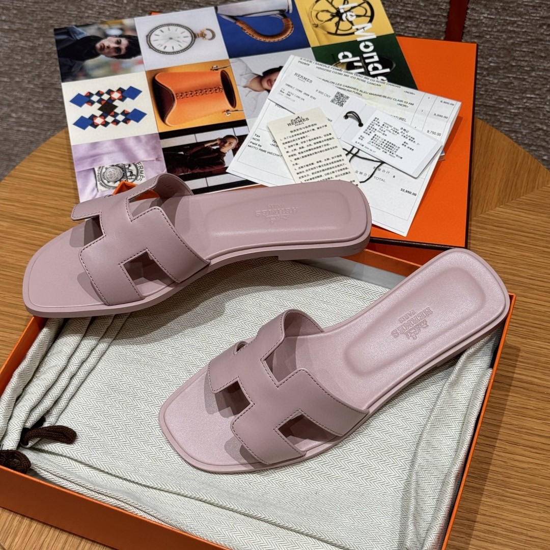 에르메스 오란 샌들 (Hermès Oran Sandal)에르메스의 시그니처 H 컷아웃 디자인이 돋보이는아이코닉한 오란 샌들 모델입니다.부드러운 램스킨과 화사한 로즈 캉캉 컬러가 어우러져우아하면서도 여성스러운 분위기를 완성해줍니다.---✔ 제품 특징정품과 동일한 실루엣 및 비율 구현고급 램스킨 소재 사용부드럽고 유연한 착화감천연 가죽 아웃솔 적용전체 수제 제작 공정---✔ 소재갑피: 램스킨 (어린 양가죽)아웃솔: 천연 가죽 바닥---✔ 컬러로즈 캉캉 (Rose Cancan)---✔ 사이즈 안내34 – 41 사이즈 제작 가능반 사이즈 제작 가능주문 제작 상품으로 교환·환불 불가 사이즈34 / 41 / 반 사이즈 교환·환불 불가※ 제작 전 사이즈 신중히 선택 권장---✔ 제작 기간약 15영업일 소요전 제품 수제 제작