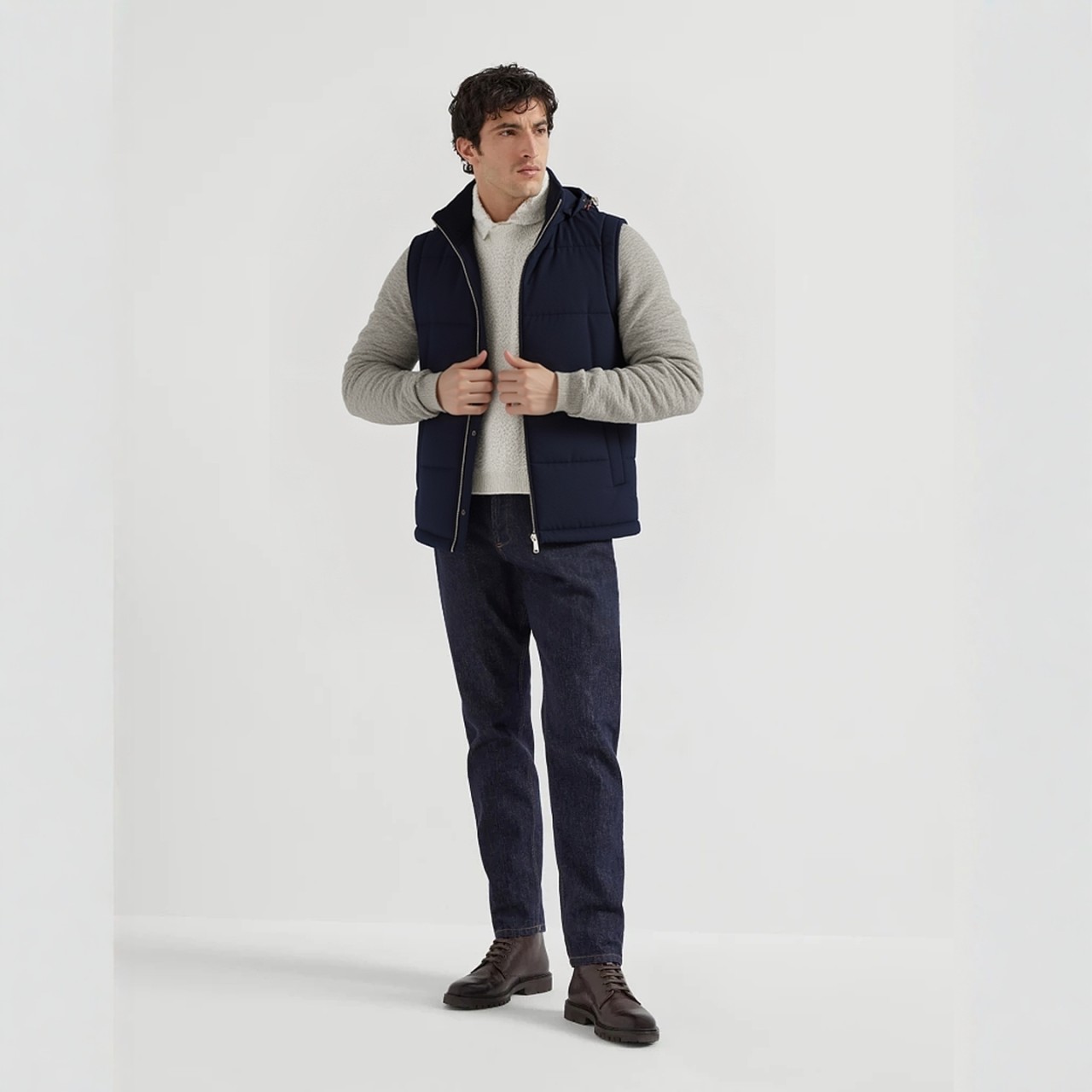 브루넬로쿠치넬리 울혼방 탈부착 후드 하이넥 베스트