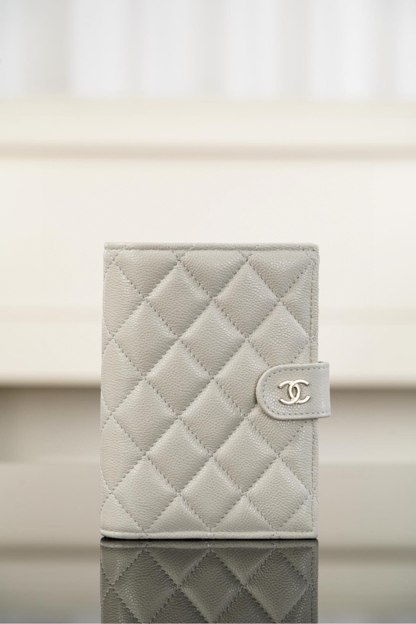 (Chanel 25K Passport Wallet Grey Caviar)