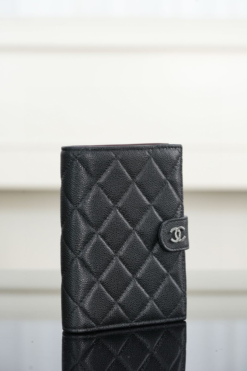 (Chanel 25K Passport Wallet Grey Caviar)