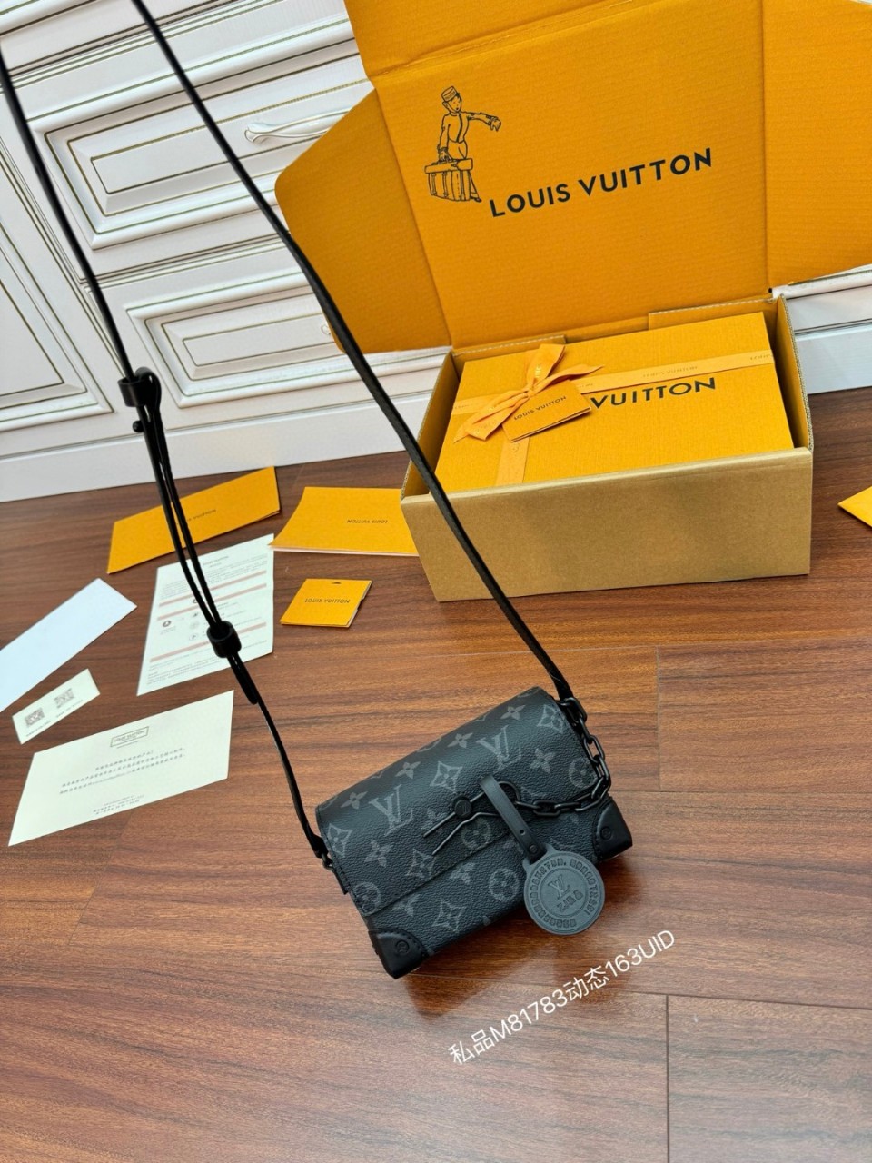 Louis Vuitton Steamer Wearable Wallet 모델 정보모델명 : 루이비통 스티머 웨어러블 월릿모델번호 : M81783라인 : 모노그램 이클립스사이즈 : 18 x 11 x 6.5 cm--- 소재 & 디테일✔ 외부 소재모노그램 이클립스 코팅 캔버스천연 카우하이드 트리밍✔ 내부 소재텍스타일 라이닝✔ 하드웨어매트 블랙 금속 디테일스티머 시그니처 체인 & 핀 잠금장식✔ 수납 구성메인 지퍼 수납 1전면 플랩 포켓 1카드 수납 가능--- 제품 특징클래식 스티머 백에서 영감받은 미니 크로스바디스트랩 탈부착 가능 (숄더/크로스 연출 가능)남녀 공용 활용도 높은 사이즈가볍고 데일리 착용에 적합--- 스티머 라인의 헤리티지를 담은컴팩트한 웨어러블 월릿 크로스백.미니멀하지만 존재감 있는 디자인으로30–40대 남성 데일리백으로 활용도 높은 모델입니다.