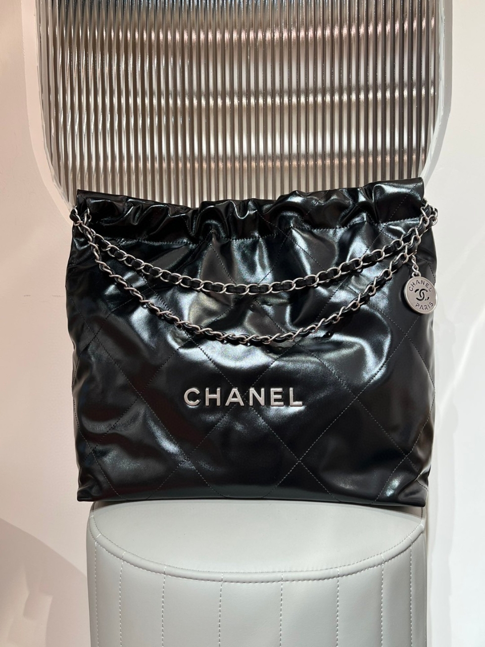 CHANEL 22 Bag Medium(샤넬 22 백 미디움)샤넬의 모던 아이콘 CHANEL 22 Bag 미디움 사이즈 모델입니다.부드러운 가죽 바디와 자연스럽게 떨어지는 실루엣이 특징이며전면 CHANEL 로고와 체인 스트랩 디테일이 고급스러운 분위기를 완성합니다.넉넉한 수납력과 편안한 착용감으로데일리백과 여행용 가방으로도 활용하기 좋은 모델입니다.소재Calfskin (카프스킨)하드웨어Gold-Tone Metal사이즈약 39 × 42 × 8 cm디테일CHANEL 로고 장식체인 숄더 스트랩드로스트링 클로징 구조내부 파우치 포함