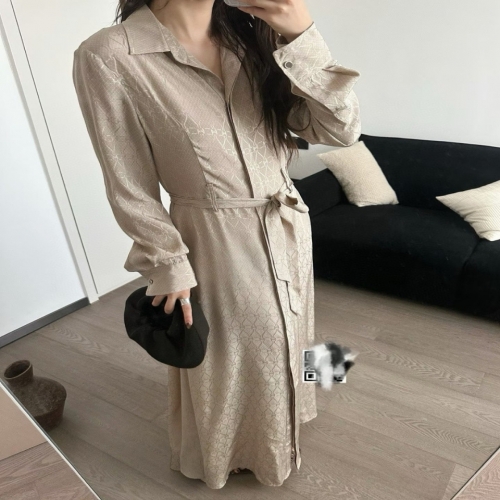은은하게 드러나는 자카드 패턴과 차분한 베이지 컬러가 만들어내는 고급스러운 분위기. 허리 벨트 디테일로 자연스럽고 슬림한 실루엣 완성.
