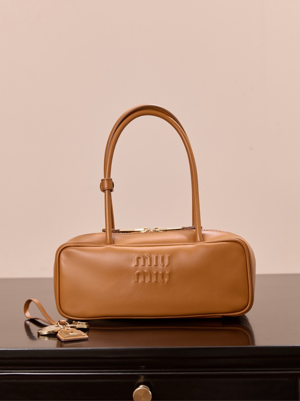 MIU MIU 미우미우 아르카디 마테라쎄 양가죽 스몰백 (카라멜 브라운)
