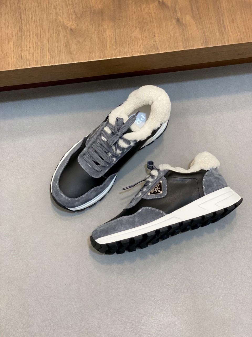 Prada 프라다 25F/W남성 퍼안감 그레이 블루 배색 스니커즈