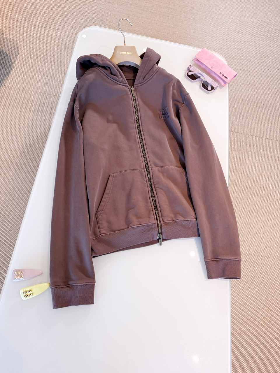 MIUMIU 미우미우 네이비 자수 칼라 집업 재킷