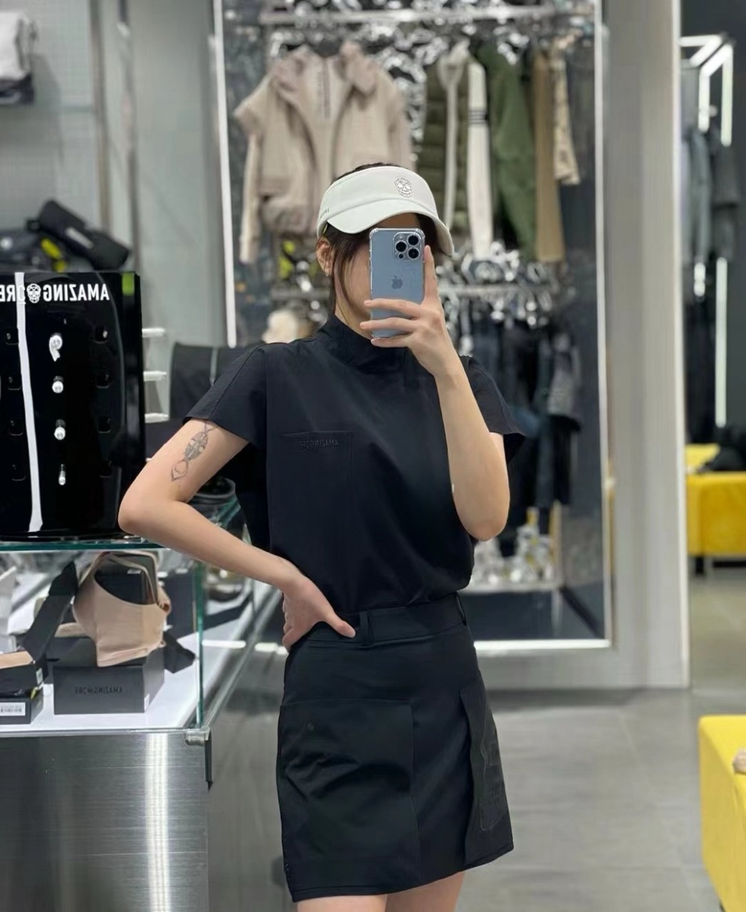 어메이징크리 여성 하이엔드 블랙 기능성 반팔 탑