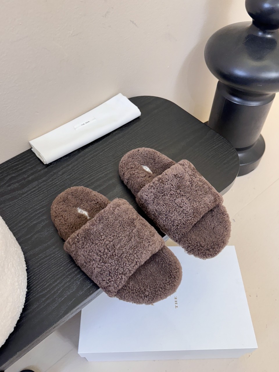 THE ROW 더로우 25S 양모 플랫 퍼 슬리퍼 (초코브라운)