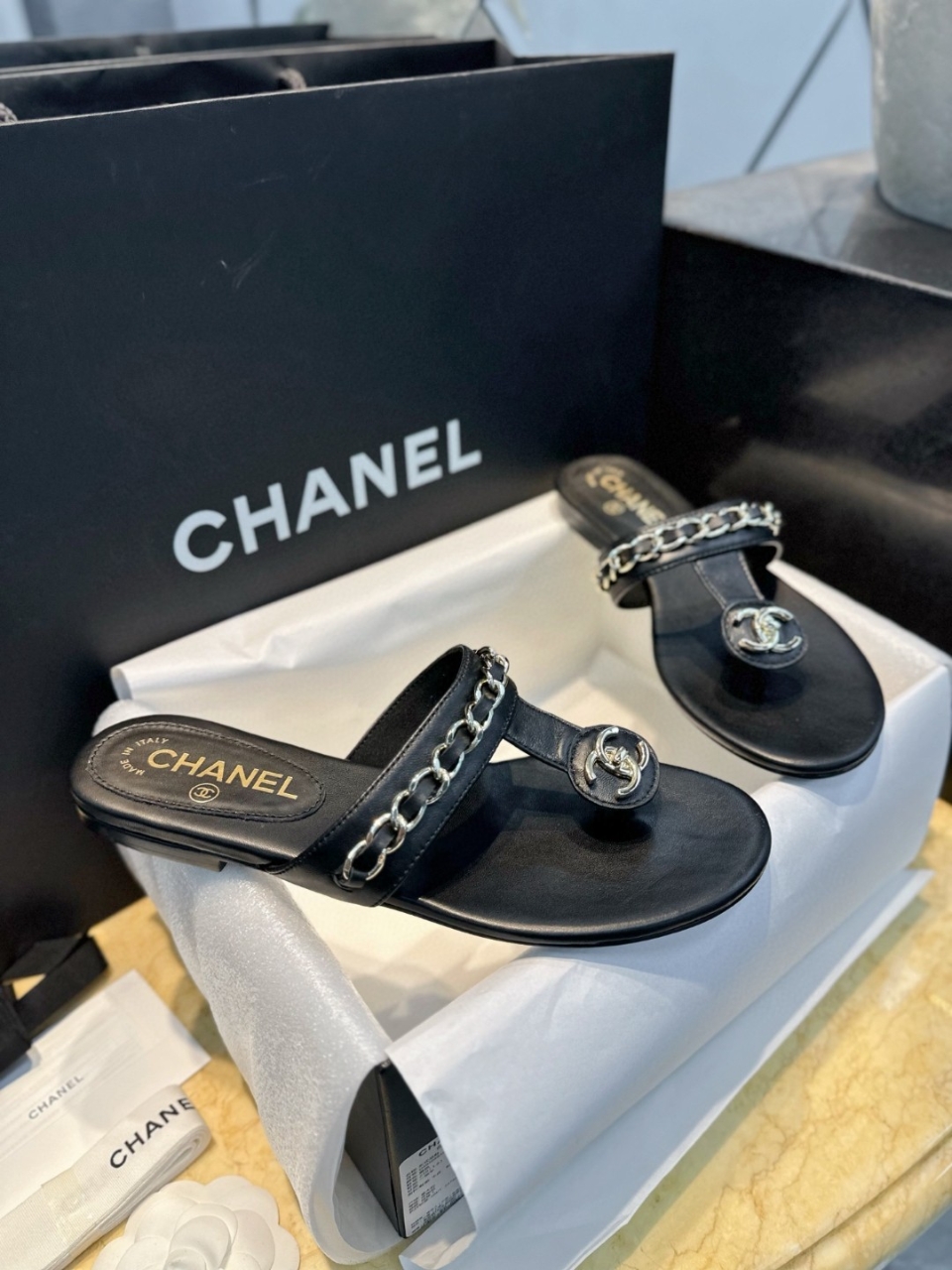 CHANEL 25C 진주 실크 벨벳 CC 조리 슬리퍼