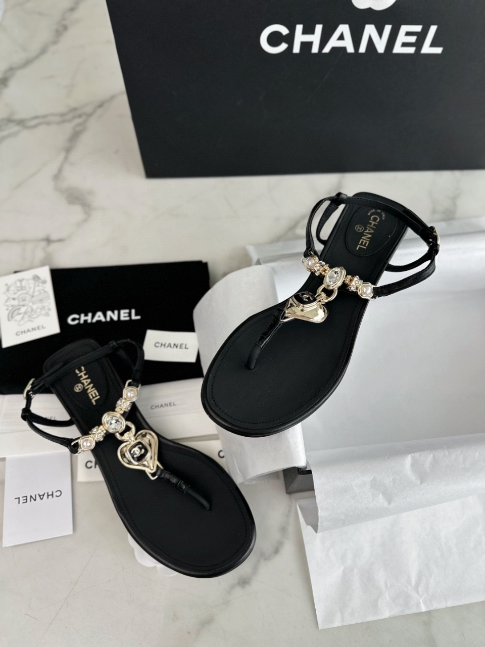샤넬 CHANEL 25C 진주 실크 벨벳 CC 조리 슬리퍼