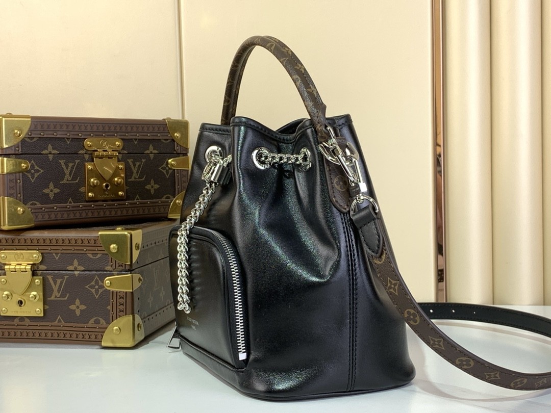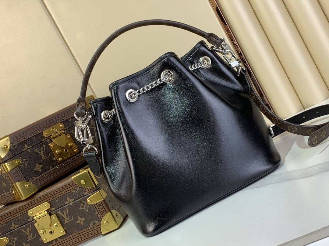클래식한 노에(Noé) 백의 요소에 모던하고 록시크한 무드를 더한 고급 양가죽 제품입니다.