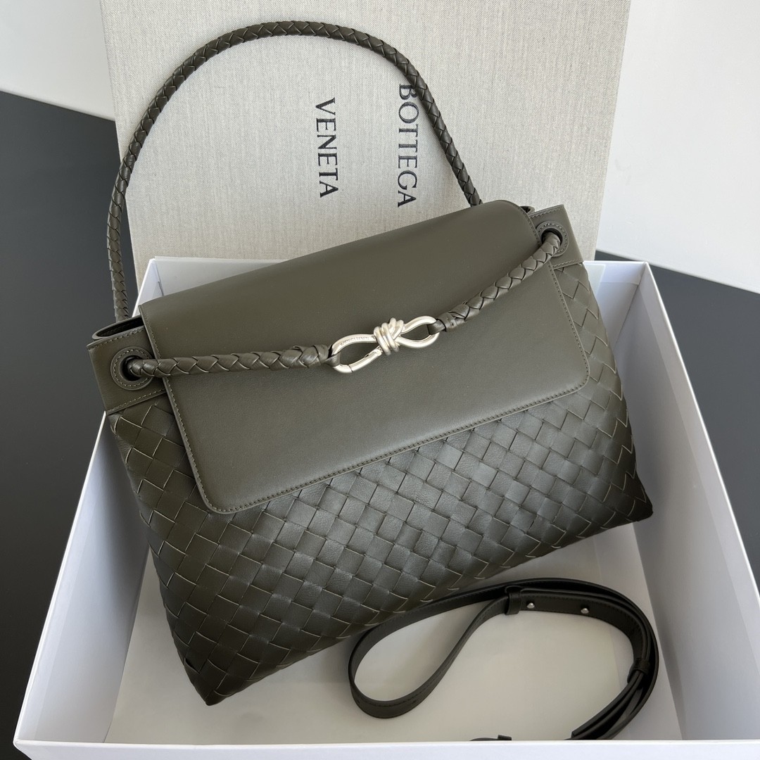 . 보테가의 아이코닉 인트레치아토 위빙 패턴과 부드러운 소가죽의 조화 . 은은한 그레이 컬러가 선사하는 세련되고 모던한 무드 . Knot 매듭 장식과 단단한 전가죽 숄더 스트랩으로 포인트 . 토트, 숄더, 크로스 모두 활용 가능