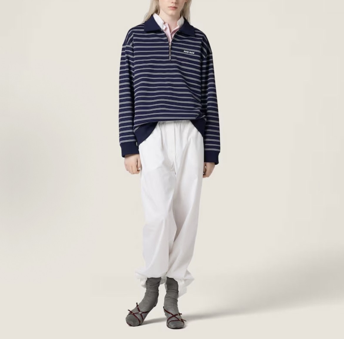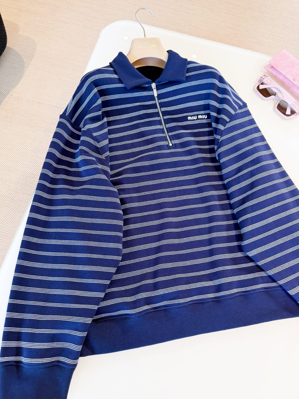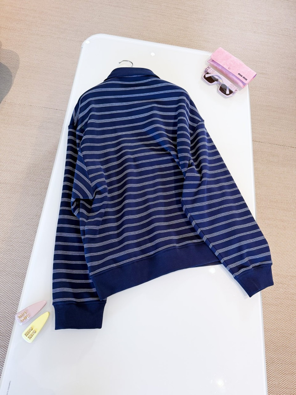 MIU MIU 25SS 미우미우 스트라이프 반집업 니트 폴로