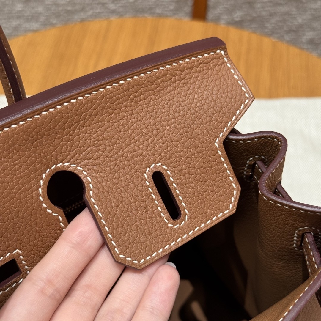 ◼ 디테일: 버킨 라인의 전통적인 플랩 & 토트백 구조, 장인 수작업 바느질