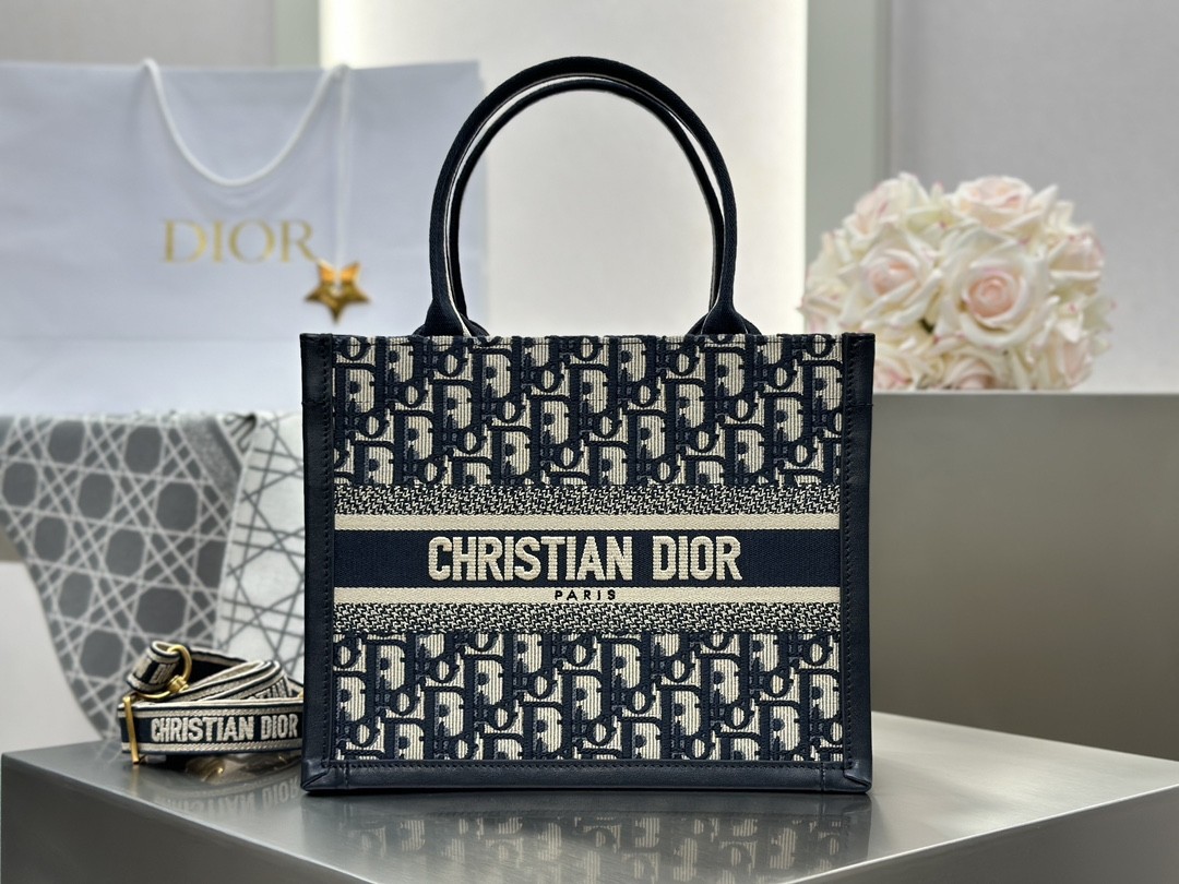 Dior Book Tote 신상 가죽 버전 – 블루 오블리크 스몰