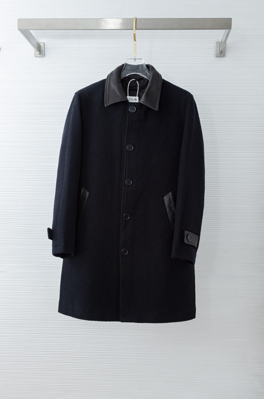 울 혼방 원단과 양가죽 디테일이 조화된 프리미엄 롱 코트입니다.