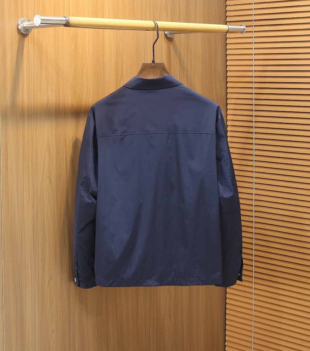 프라다 시그니처 리나일론 원단으로 가볍고 탄탄한 내구성, 고급스러운 광택감이 특징. 미니멀한 디자인에 트라이앵글 로고 디테일로 브랜드 아이덴티티 완성. 깔끔한 카라형 집업 스타일로 포멀과 캐주얼을 모두 아우르는 활용도 높은 아우터.