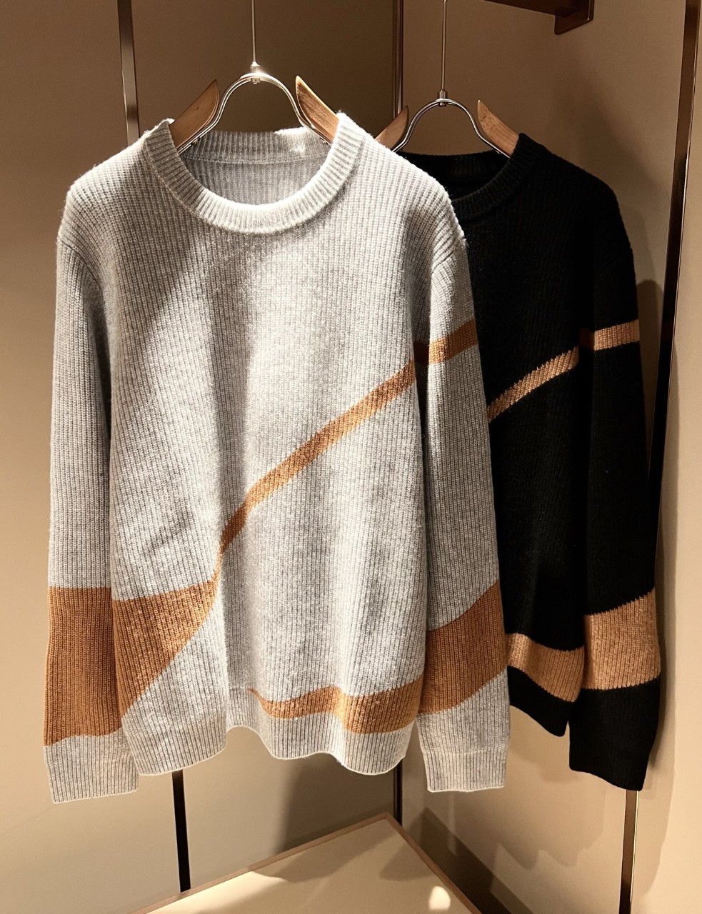 세련된 배색 디테일이 돋보이는 고급 니트입니다.