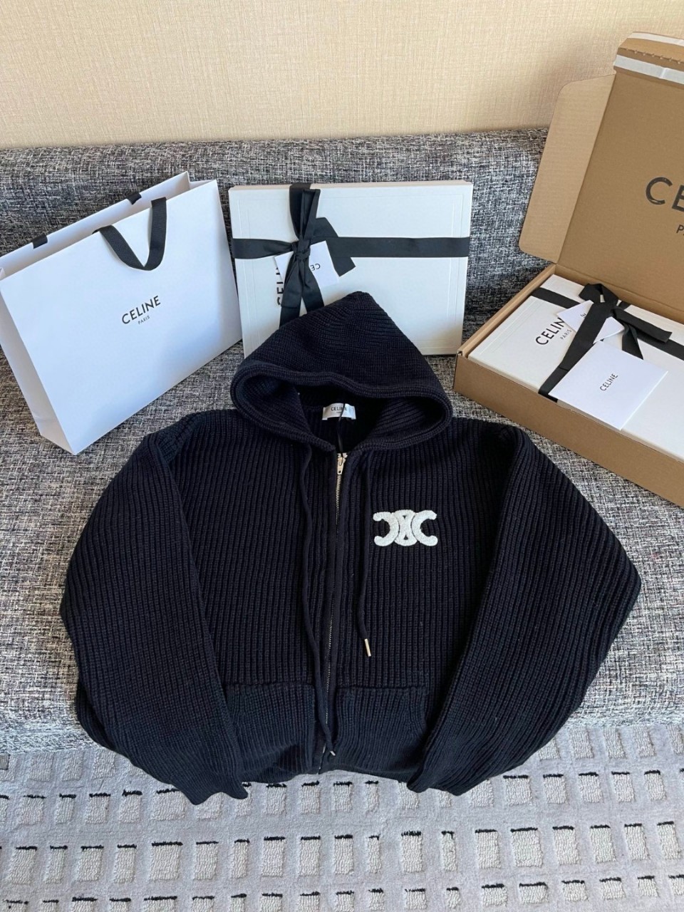 CELINE 25FW 트리옴프 자수 울 니트 후드 집업(잔디집)