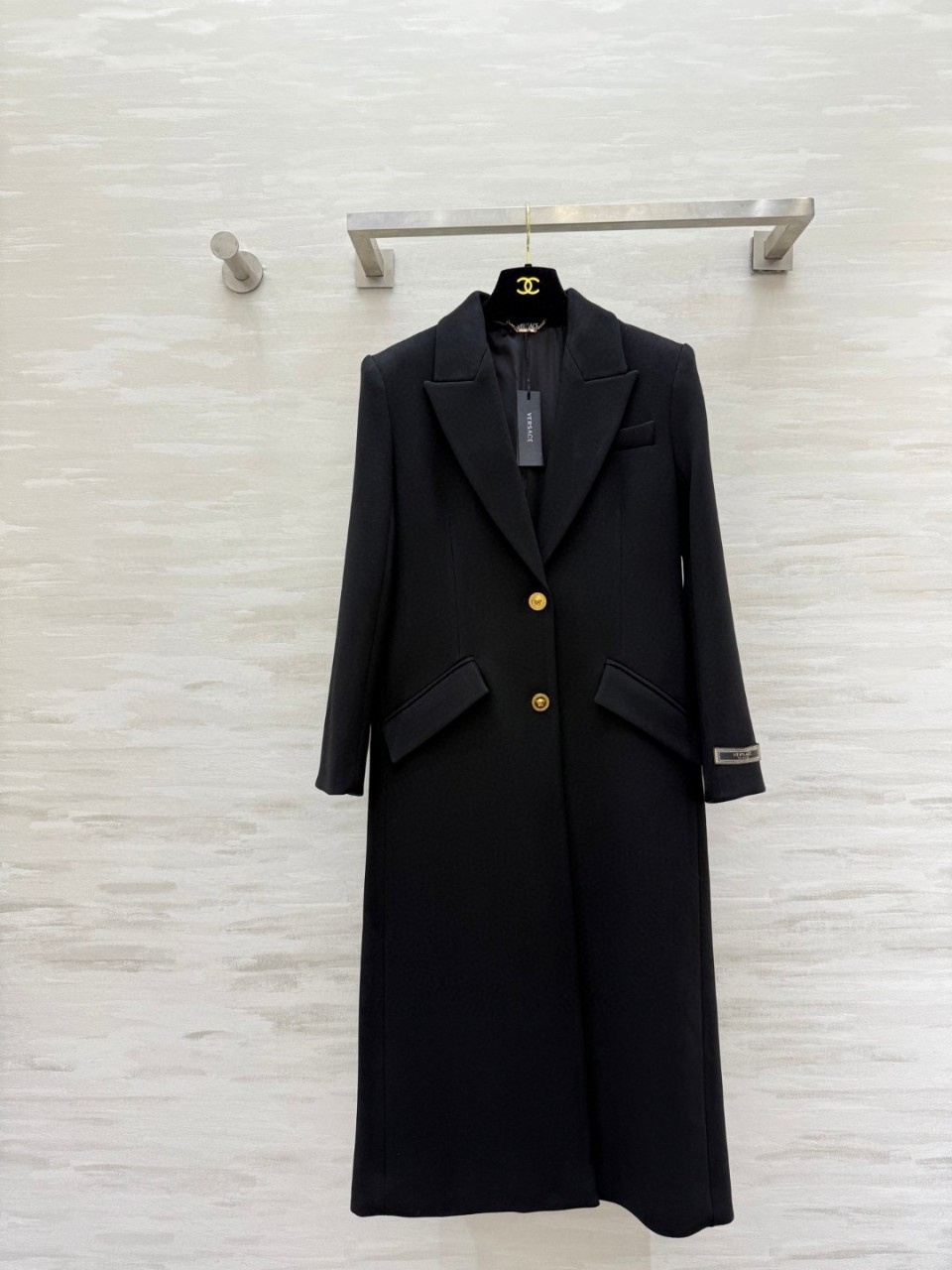 VERSACE 블랙 클래식 테일러드 롱 재킷