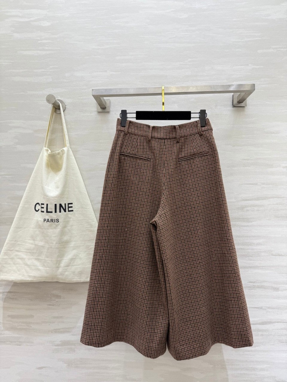 셀린느 특유의 클래식한 무드를 담은 빈티지 체크 패턴 와이드 팬츠.
