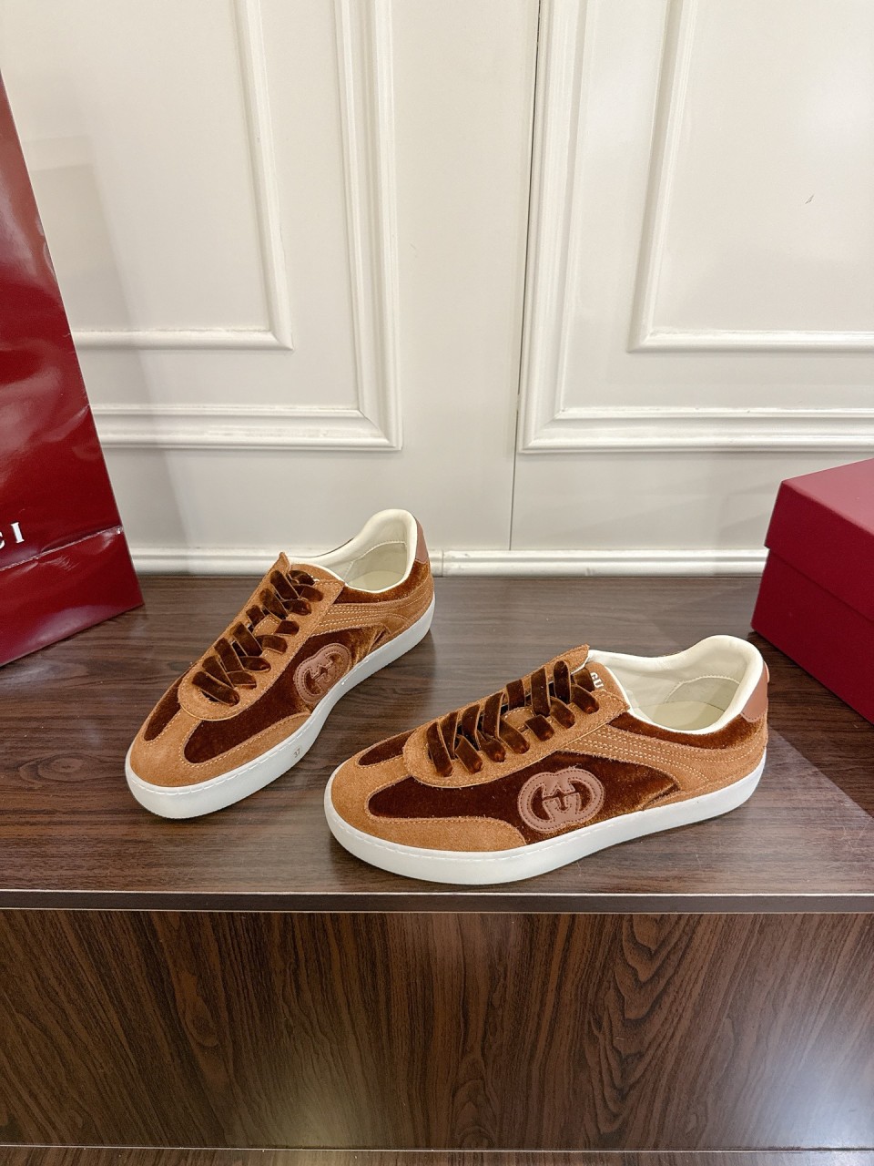 ---? [GUCCI] 더블 G 스니커즈 – Suede & GG Canvas (35~41)---제품 특징디자인: 클래식한 Interlocking G 로고, GG 패턴으로 브랜드 아이덴티티 강조핏감: 유선형 라인으로 세련된 실루엣 제공분위기: 모던하고 고급스러운 무드, 캐주얼/데일리룩에 적합특징: 견고한 소재와 편안한 착화감, 럭셔리 감각을 동시에 만족---사이즈 가이드 (EU → 한국 mm 변환)EU 사이즈 한국(mm) 착화 TIP35 225 정사이즈 추천36 230 정사이즈 추천37 235~240 발볼 넓으신 분은 반 사이즈 업 권장38 245 정사이즈 추천39 250 정사이즈 추천40 255 정사이즈 추천41 260 정사이즈 추천> 착화 팁: 스니커즈 특성상 활동량이 많은 분들은 정사이즈, 발볼이 넓은 분들은 반 사이즈 업을 권장합니다.---판매가격210,000원---> “Gucci Double G Sneakers.스웨이드와 GG 캔버스의 조화, 클래식 로고 포인트.세련된 감각과 편안함을 동시에 갖춘 데일리 럭셔리